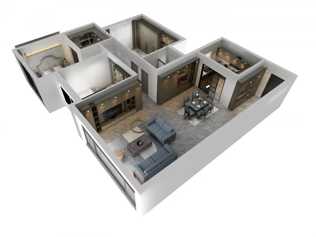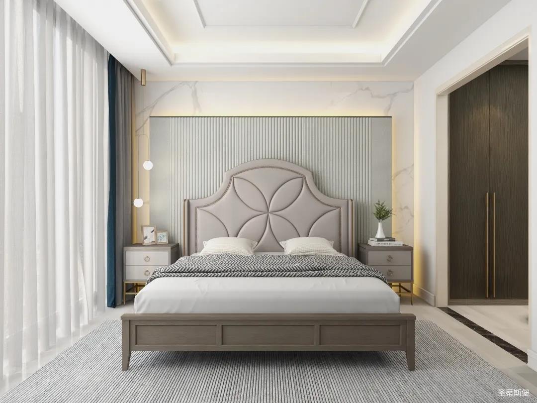 材质的交替与光影的变换,具有浓浓的现代简奢色彩。独一无二的英伦爵士灰定制柜,由延边镶嵌的香槟金拉丝金属分割,线条流畅且奢华,不仅代表着时尚,也崇尚了实木韵味。设计师将现代、实用、精致的艺术设计风格应用其中,更是精致生活方式的艺术演绎。在平静的空间中表现出独特的艺术骨感,满足我们对精致生活的精神追求。
