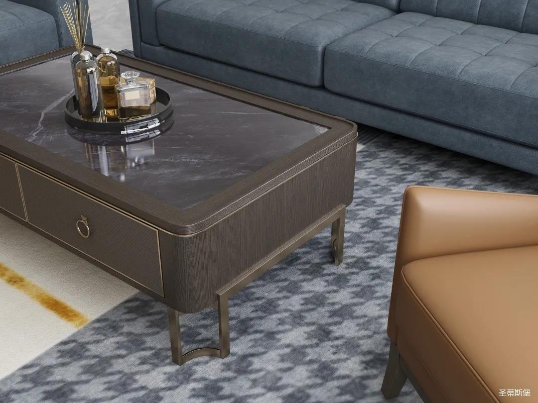 雾霾蓝低饱和的沙发,沿用了蒙德里安的几何设计美学,兼容了雅致与时尚的风范,在平静的生活中表现出独特的艺术骨感,满足我们对精致生活的精神追求。