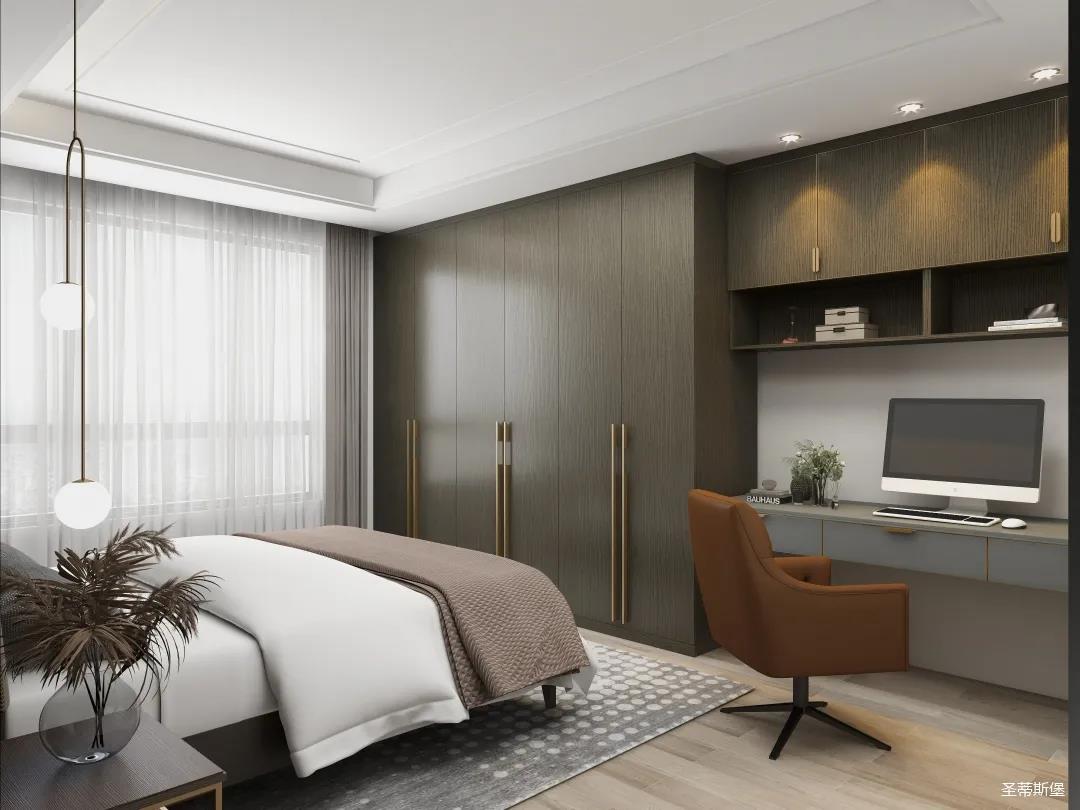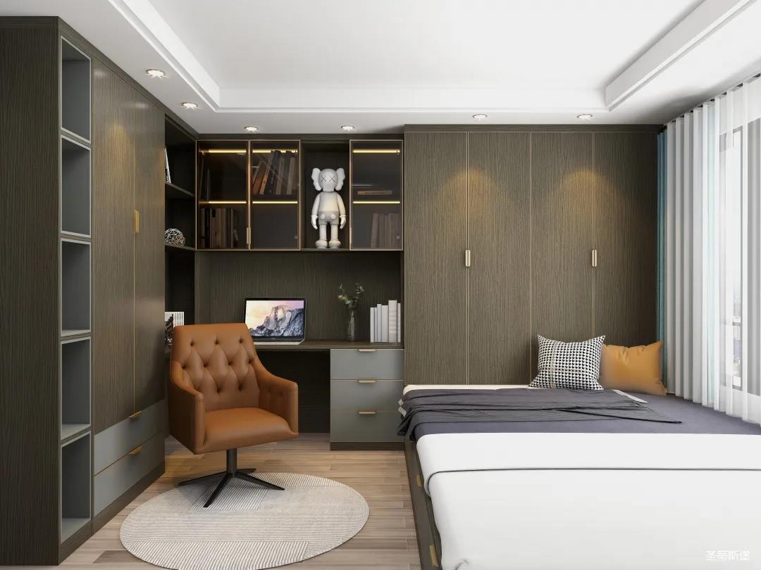 别具一格的定制,都是通过高级材质与色彩来展现极简摩登生活。一字型衣柜+书桌设计,打造了“简而不减”的别致空间。深邃的灰色系定制为空间注入现代都市风情,在品位简约中彰显奢华气质!